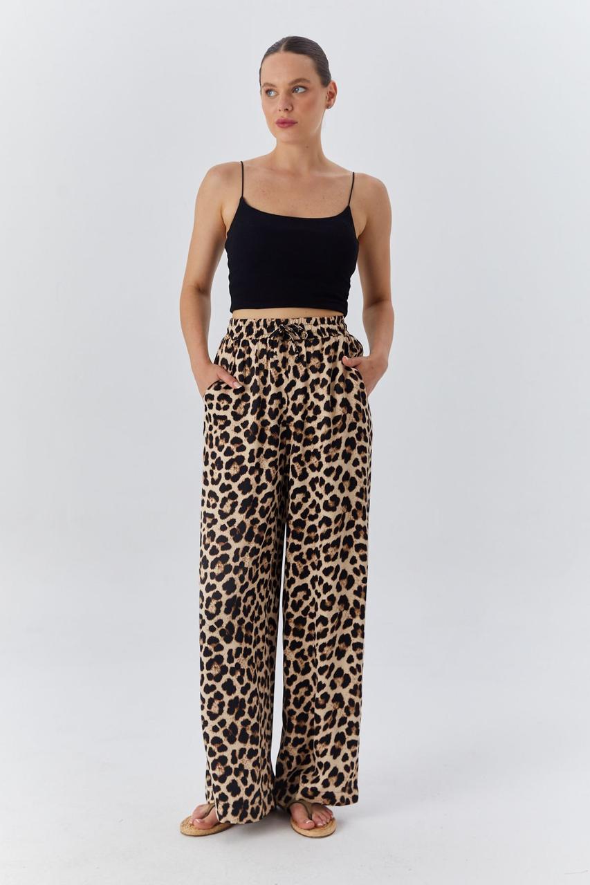 Вишукані штани з модним принтом леопард Тканина котон шовк кристал. Туреччина